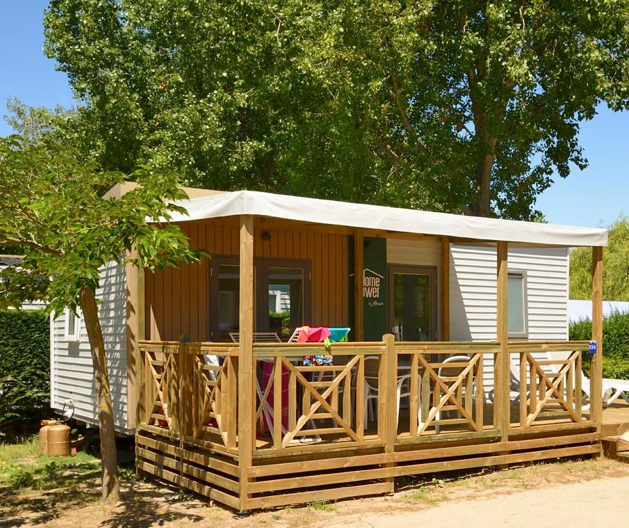 Découvrez notre mobil-home tout équipé de 31m², pouvant accueillir jusqu’à 6 personnes. Pratique et douillet, il dispose d’une grande terrasse semi-couverte, d’un séjour confortable et de trois chambres spacieuses (une avec lit double 160×200 cm et quatre lits simples 80×190 cm), ainsi que d’une salle d’eau. Notre Mobil-Home Standard est le choix parfait pour des vacances économiques et agréables.