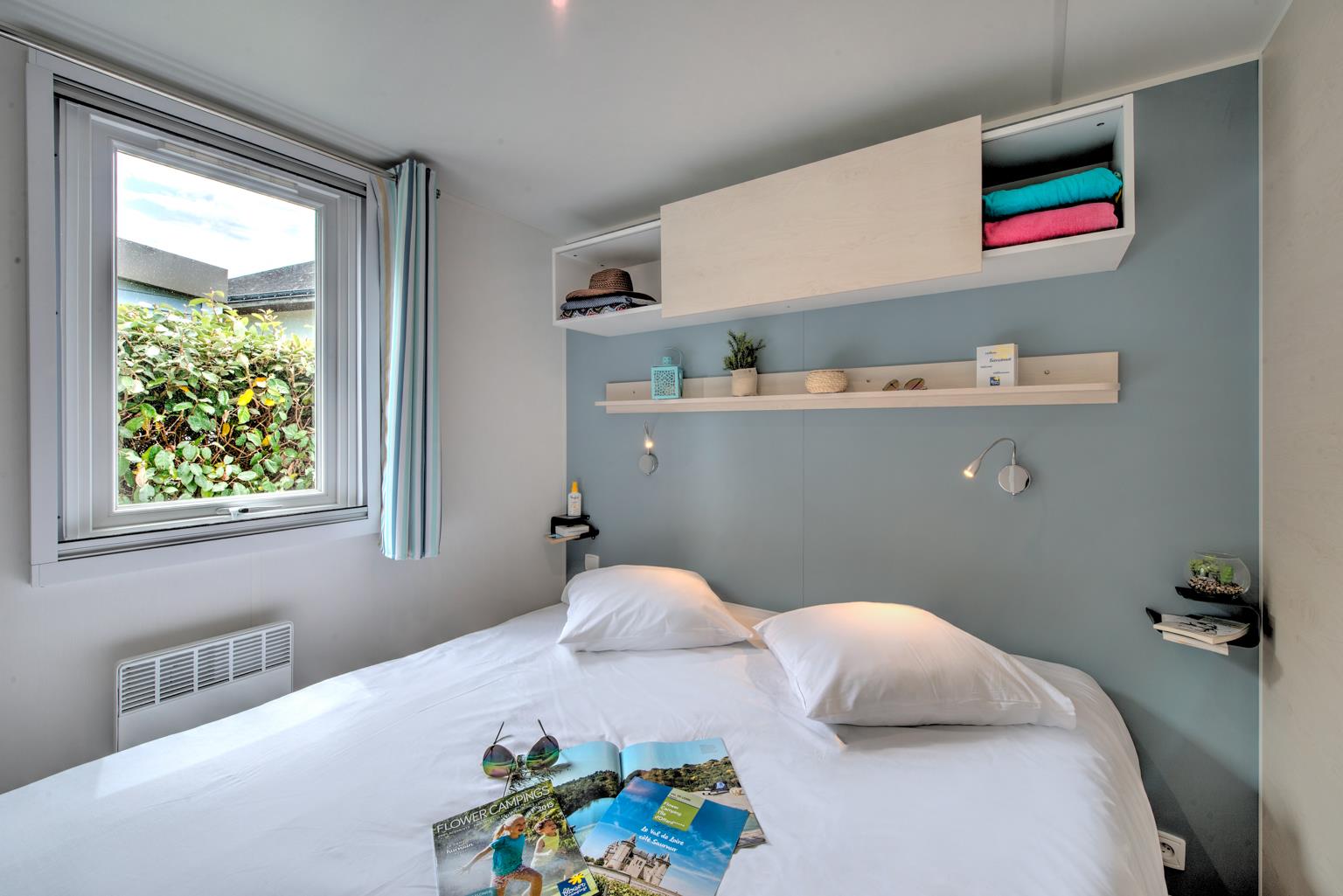 Séjournez dans l’un de nos mobil-homes avec ou sans télévision à Quiberon disponibles en 1, 2 ou en 3 chambres. Offrez-vous des vacances en camping à Quiberon abordables dans nos locations standard et confort grâce à nos offres spéciales dès 199€ la semaine. Pour un confort optimal, optez pour nos mobil-homes « Homeflower » avec une large palette d’équipements inclus : télévision, climatisation, lave-vaisselle, plancha et surtout draps et serviettes inclus. Équipés de terrasse semi-couverte, nos mobil-homes en location vous permettront de passer un séjour tant en intérieur qu’en extérieur. Profitez de moments de convivialité en famille ou entre amis sur la terrasse en profitant de repas entre amis ou en famille en camping 4 étoiles avec piscine à Quiberon. À l’intérieur, vous évoluerez dans un bel espace de vie avec banquette et table et coin cuisine tout équipé. Comme à la maison, profitez de chambres confortables et d’une salle d’eau avec douche et évier avec rangement.